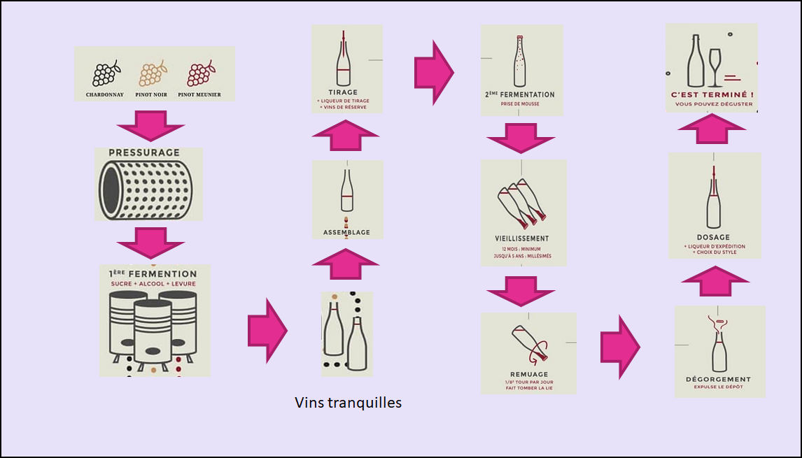 In practice, most winemakers allow their wines to mature much longer than the required minimum time, taking into account that the Meunier ages faster than the Chardonnay, which is more lively.